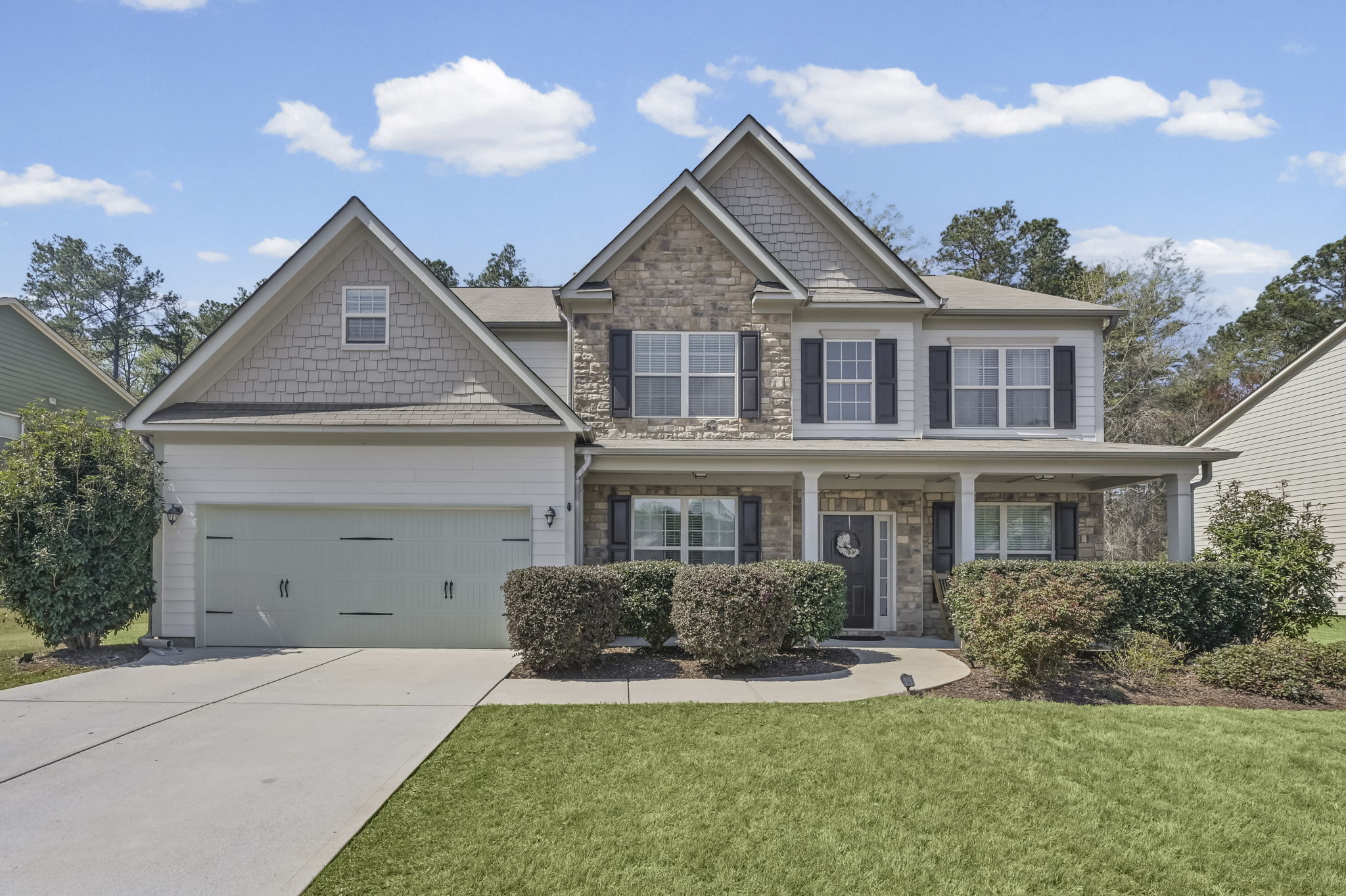 Welcome home to this spacious six-bedroom retreat in the sought-after Poplar Springs community, located in the highly desirable Hillgrove High School district! A charming front porch sets the tone, inviting you inside and offering the perfect place to relax and enjoy the peaceful surroundings of this large lot with mature, low-maintenance landscaping. Step through the impressive two-story foyer where the thoughtful layout immediately shines. Designed with entertaining in mind, the home features both a formal living room and a separate dining room—ideal for hosting gatherings or special occasions. Throughout the home, you’ll appreciate the elevated finishes including wainscoting, coffered and tray ceilings, crown molding, wide baseboards, and beautiful hardwood floors that add warmth and character. The bright and open kitchen is the heart of the home, featuring granite countertops, stainless steel appliances, ample cabinetry, and a sunny breakfast area. It flows seamlessly into the spacious family room, where a cozy fireplace and a wall of windows create an inviting space filled with natural light and views of the backyard. Upstairs, the oversized primary suite offers a relaxing retreat with a private sitting area—perfect for a reading nook, home office, or quiet escape. The spa-like primary bath features split vanities and a generous walk-in closet. Four additional secondary bedrooms and a full bath upstairs provide plenty of space for family, guests, or flexible living arrangements. A main-level bedroom adds even more versatility and is ideal for guests or multi-generational living. Located in the heart of West Cobb, this home offers easy access to shopping, dining, parks, and everyday conveniences—all within a top-rated school district. With its spacious layout, beautiful finishes, and fantastic location, this home truly has something for everyone.
